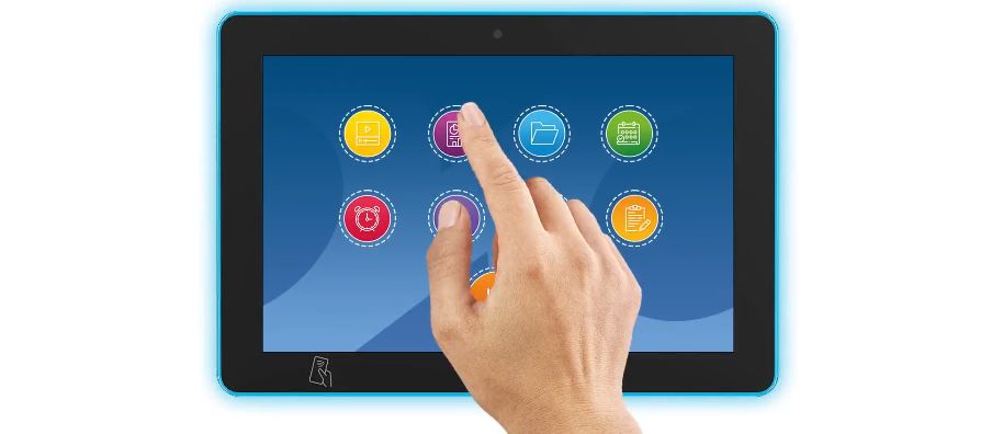 DĂky ÄŤteÄŤce NFC/RFID umoĹľĹuje dotykovĂ˝ panel PC bezdrátovou komunikaci s povolenĂ˝mi zaĹ™ĂzenĂmi nebo znaÄŤkami v blĂzkosti.
