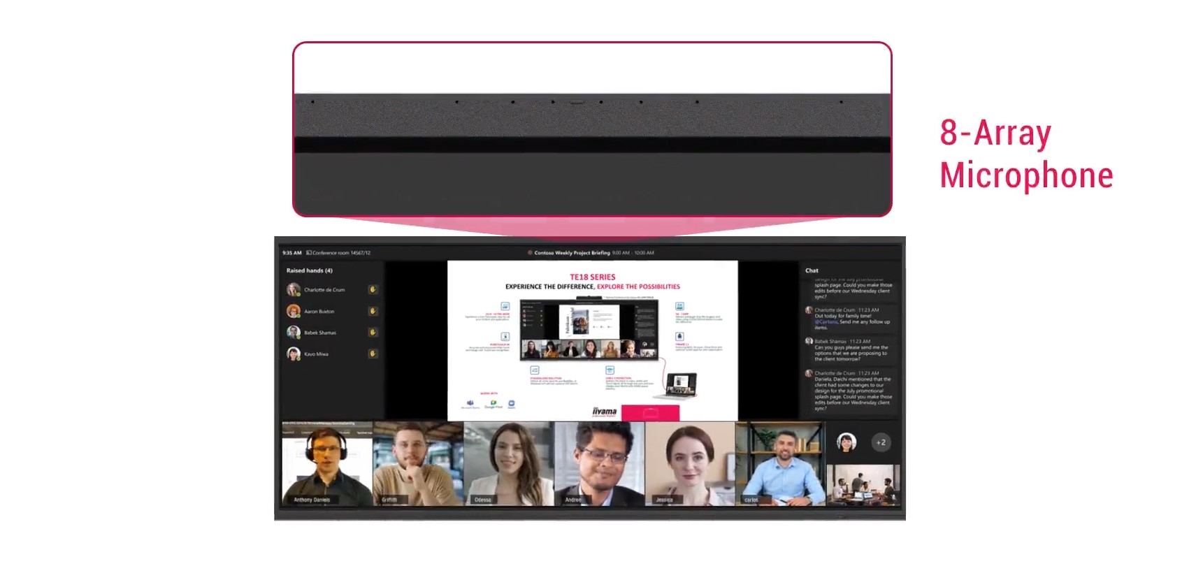 Integrovaný mikrofon s 8 maticemi poskytuje výjimečnou čistotu zvuku a zajišťuje, že váš hlas bude slyšet hlasitě a jasně během virtuálních schůzek a konferencí.