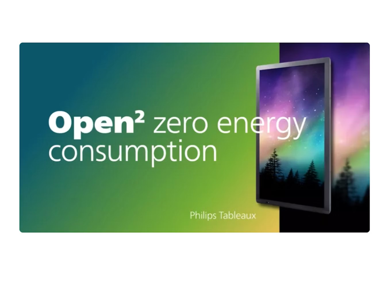 Philips Tableaux otevírá novou éru zobrazovací technologie a přináší podnikům po celém světě digitální značení bez napájení. Bez spotřeby energie zobrazuje statické obrázky v úchvatných 60 000 barvách po neomezenou dobu. K přepnutí na nový obrázek potřebuje pouze velmi malé množství energie.