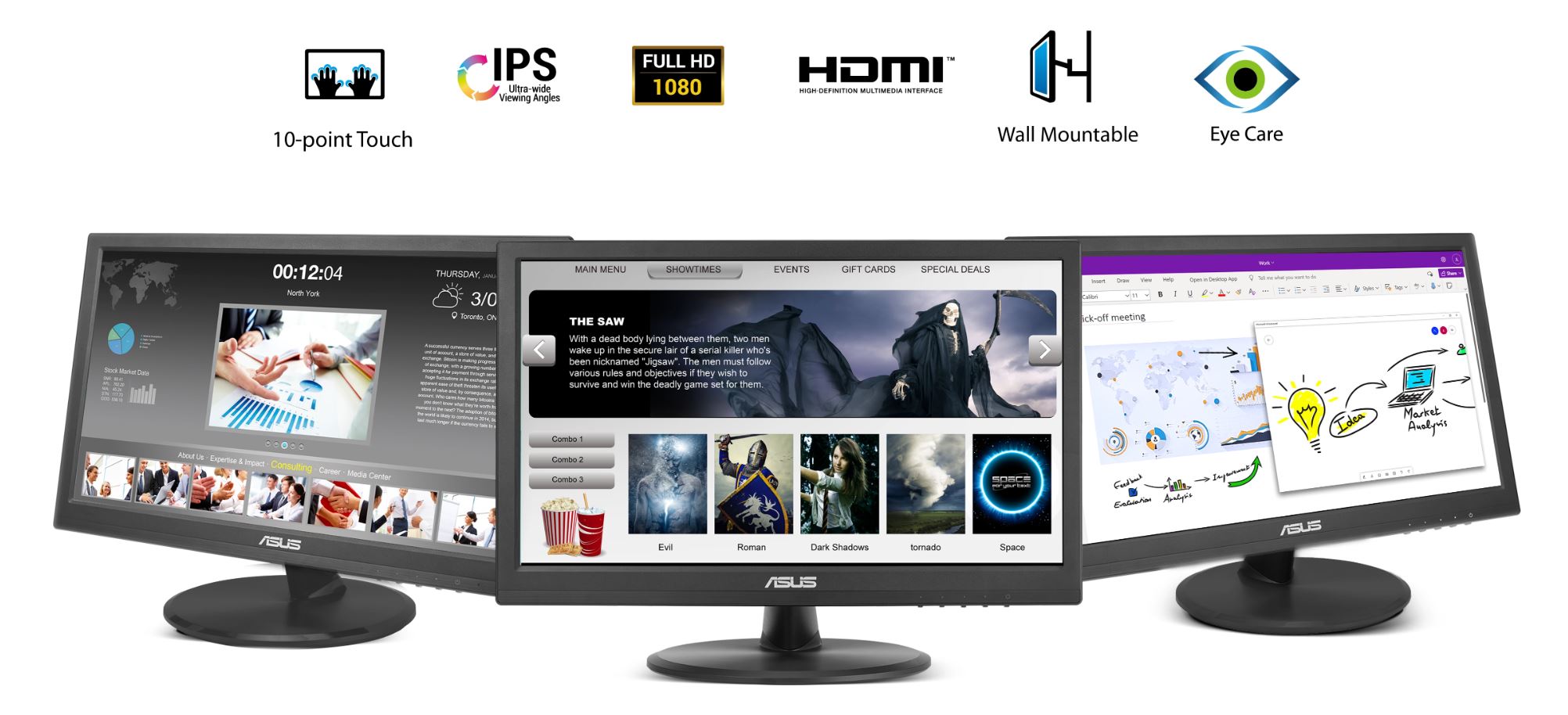 ASUS VT169HE je 15,6palcovĂ˝ IPS monitor s rozlišenĂm Full HD (1920x1080), kterĂ˝ kombinuje schopnost 10bodovĂ©ho vĂcedotykovĂ©ho ovládánĂ s vynikajĂcĂ kvalitou obrazu, flexibilnĂ konektivitou, odolnostĂ a udrĹľitelnostĂ. PĹ™esnĂ˝ a spolehlivĂ˝ vĂcedotykovĂ˝ displej - umoĹľĹujĂcĂ aĹľ 10 dotykĹŻ souÄŤasnÄ› - je optimalizován pro pouĹľitĂ s operaÄŤnĂm systĂ©mem Windows 11/10, coĹľ vám umoĹľnĂ pracovat chytĹ™eji a efektivnÄ›ji a je ideálnĂ i pro pouĹľitĂ ve sluĹľbách.