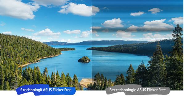 Technologie ASUS FlickerFree s certifikací TÜV Rheinland eliminuje blikání a zvyšuje pohodlí při sledování. Tato technologie pomáhá minimalizovat únavu očí a další potíže obvykle spojené s dlouhodobým sledováním obrazovky.