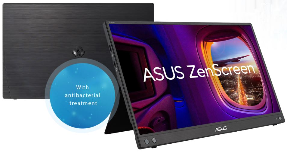 Patentovaná antibakteriální úprava iontovým stříbrem zabudovaná do rámečků a zadní strany monitoru ZenScreen MB16AHV nabízí dlouhodobou ochranu, která brání až 99,9 % růstu a ulpívání bakterií a udržuje klíčové oblasti monitoru čisté a hygienické. Potenciálně omezuje šíření škodlivých bakterií, takže se při práci na cestách můžete cítit bezpečně.