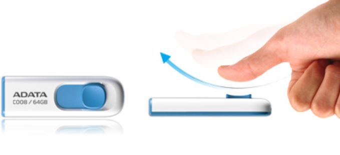 Elegantní design se vyznačuje posuvným USB konektorem, který se stisknutím palce plynule vysune z disku. Mechanická konstrukce bez krytu eliminuje potíže se ztrátou. Konektor USB lze připravit k použití pouze jednou rukou pro větší pohodlí, když je rychlost nutností.