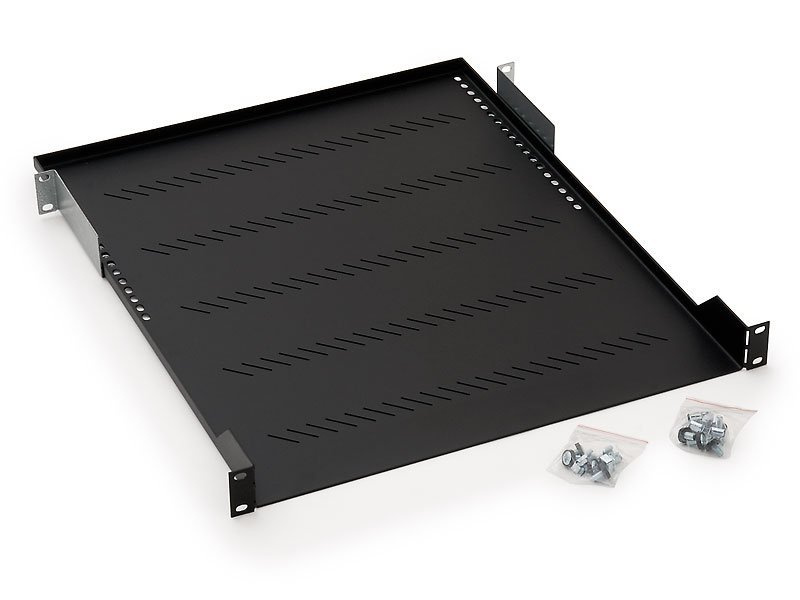 19" polička perforovaná 1U/750mm, max.nosnost 150kg,integrované podpěry