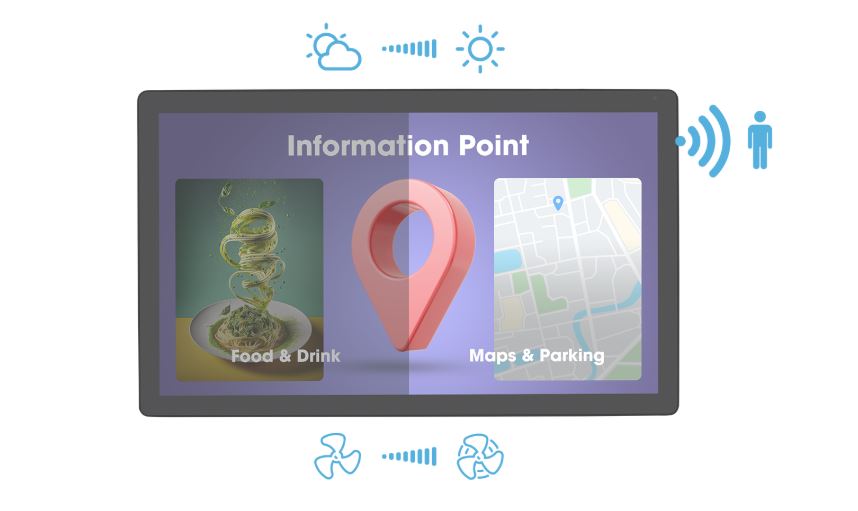 21.5" high-brightness touchscreen with 10 touch points PCAP touch technology for semi-outdoor applications