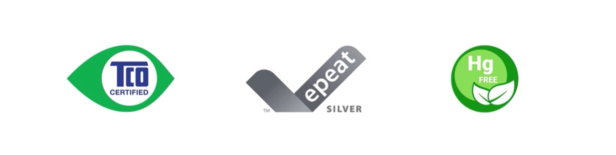 Tento produkt splňuje 100 % kritérií TCO Certified, nejkomplexnější certifikace udržitelnosti pro IT produkty na světě. Splňuje také kritéria EPEAT® Silver zahrnující hodnocení environmentální a sociální odpovědnosti stanovené EPEAT® – přední světovou ekoznačkou pro elektroniku. Stejně jako každé elektronické zařízení prodávané v EU je v souladu se směrnicí o omezení nebezpečných látek 2002/95/EC (RoHS 1) o omezení používání určitých nebezpečných látek. Přestože směrnice umožňuje použití až 0,1 % rtuti, tento výrobek je 100 % bez rtuti.