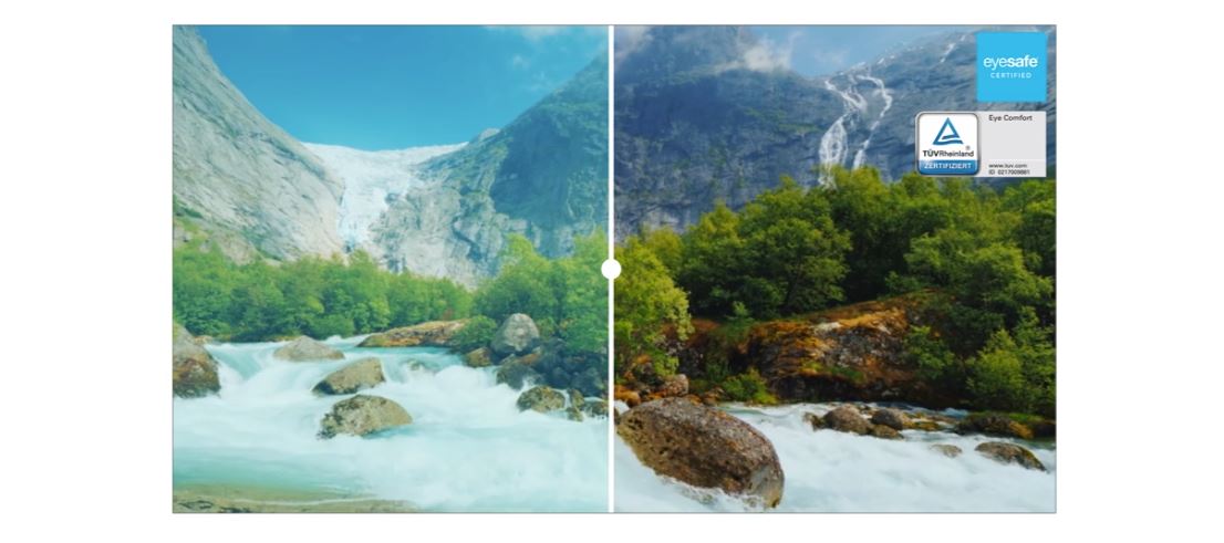 Certifikace Eye Safe, založená na optických testech a výzkumu vedeném optometristy a oftalmology z celého světa, znamená, že tento produkt poskytuje trvale zapnutou ochranu proti modrému světlu, která snižuje vysokoenergetické modré světlo a přitom zachovává nedotčený barevný výkon. Splňuje také požadavky certifikace Eye Comfort, která potvrzuje, že produkt má snížené modré světlo a nebliká, aby chránil oči a chránil zrak uživatele a umožňoval uživateli měnit polohu těla, aniž by byla ohrožena kvalita vizuálního obrazu.