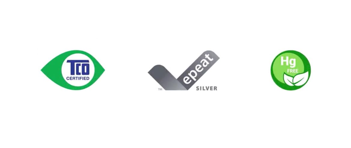 Tento produkt splňuje 100 % kritérií TCO Certified, nejkomplexnější certifikace udržitelnosti pro IT produkty na světě. Splňuje také kritéria EPEAT® Silver zahrnující hodnocení environmentální a sociální odpovědnosti stanovené EPEAT® – přední světovou ekoznačkou pro elektroniku. Stejně jako každé elektronické zařízení prodávané v EU je v souladu se směrnicí o omezení nebezpečných látek 2002/95/EC (RoHS 1) o omezení používání určitých nebezpečných látek. Přestože směrnice umožňuje použití až 0,1 % rtuti, tento výrobek je 100 % bez rtuti.