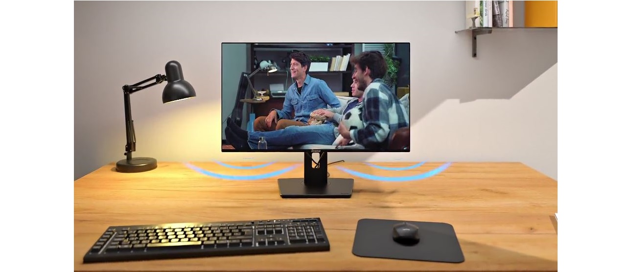Díky integrovanému zvuku si můžete užít čistý a příjemný zvuk pro hovory, videa a hudbu a zároveň si ušetřit další reproduktory na stole.