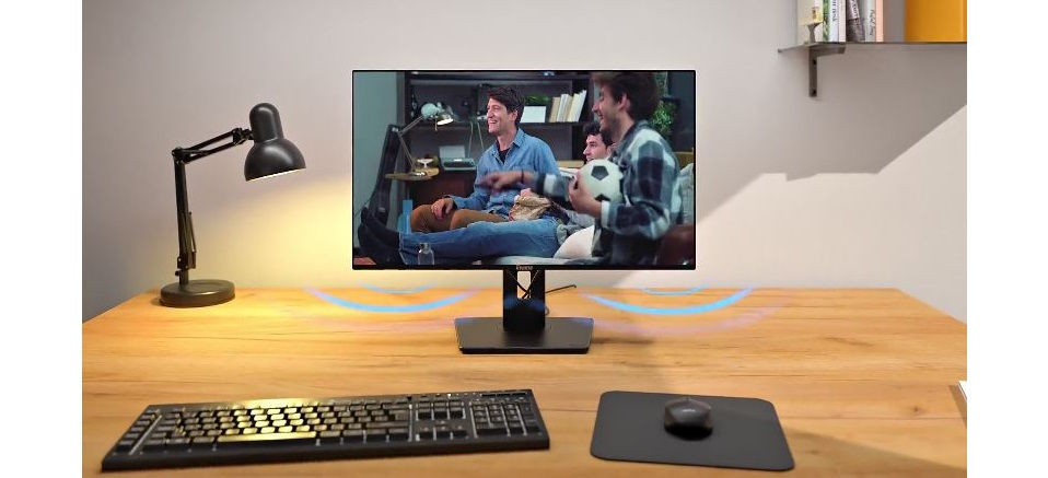 Díky integrovanému zvuku si můžete užít čistý a příjemný zvuk pro hovory, videa a hudbu a zároveň si ušetřit další reproduktory na stole.