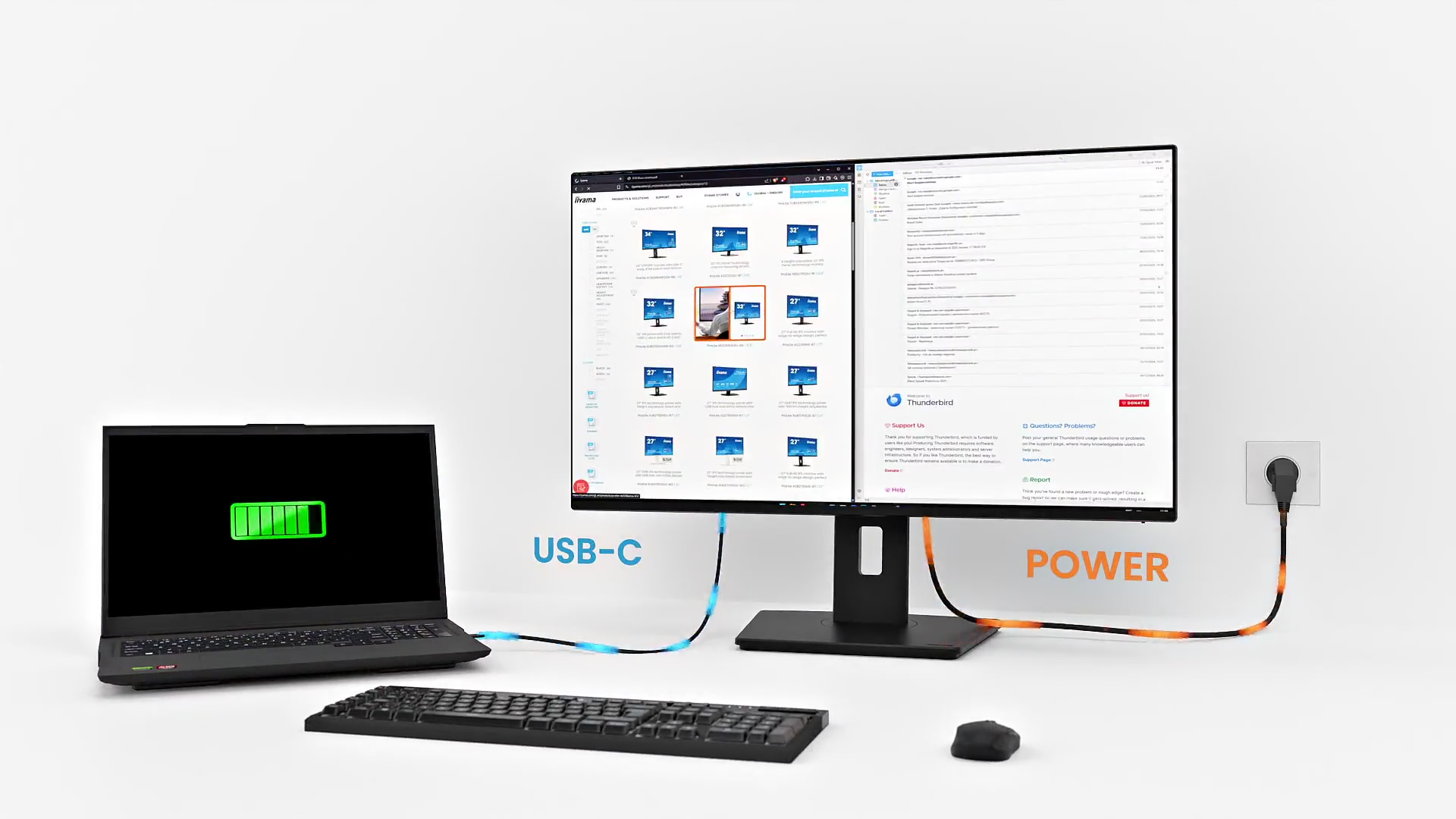 Díky USB-C s výkonem až 65 W zůstane váš notebook během práce nabitý, a to pomocí jediného připojení bez zbytečných kabelů. Díky oboustrannému designu už nikdy nebudete muset hledat správnou stranu pro připojení. Jedná se o jednoduché a spolehlivé řešení, díky kterému se můžete soustředit na to nejdůležitější.