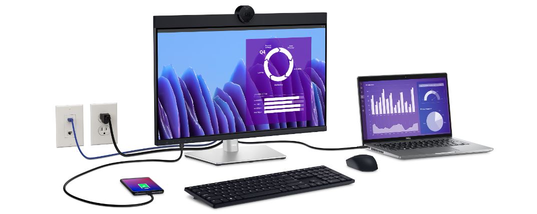 Připojte se k produktivitě: Díky možnostem kabelového připojení, jako je RJ45 a USB-C®, váš monitor poskytuje spolehlivý Ethernet, napájení, zvuk a video – to vše v přehledném nastavení.