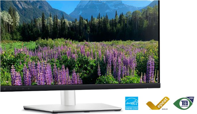 Environmentální standardy: Monitor Dell používá v designu 85 % plastu PCR (recyklovatelného po spotřebiteli), 90 % recyklovaného hliníku a splňuje nejnovější ekologické standardy, jako je EnergyStar® a TCO Certified Edge, a má registraci EPEAT® Gold.