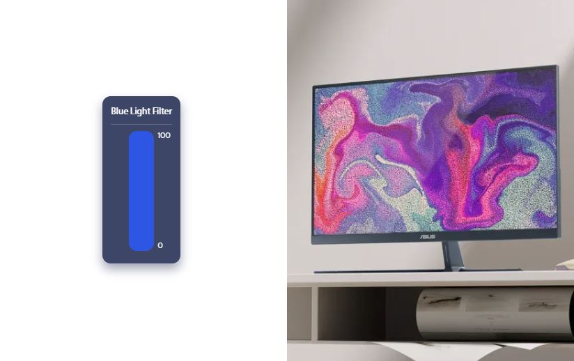 Nastavitelné úrovně filtru modrého světla podle vašich preferencí nebo jakéhokoli scénáře