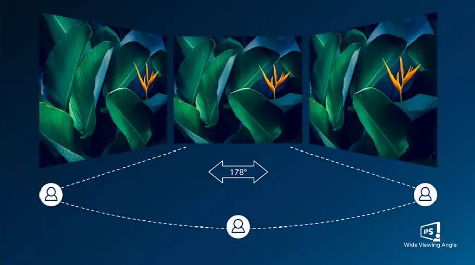 Displeje IPS využívají pokročilou technologii, která přináší zvláště široké úhly sledování 178/178 stupňů: displej lze tedy sledovat téměř z libovolného úhlu, dokonce i z úhlu 90 stupňů v režimu Pivot (Otáčení). Na rozdíl od standardních panelů TN poskytují displeje IPS pozoruhodně ostrý obraz se živoucími barvami, takže jsou ideální nejen pro fotografie, filmy a procházení internetu, ale lze je využít i pro profesionální aplikace, které za všech okolností vyžadují přesné barvy a konzistentní jas.