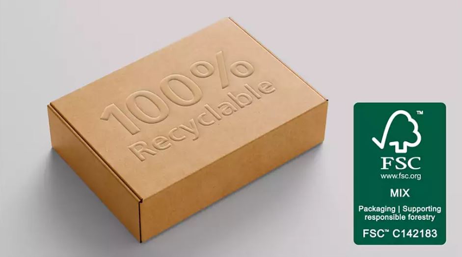 100% recyklovatelný materiál a obal s certifikací FSC