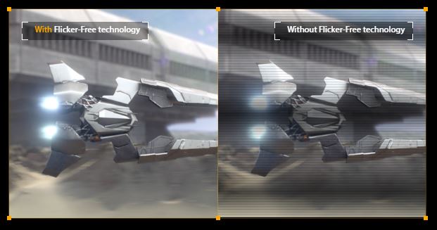Technologie Flicker-Free snižuje škodlivé blikání, aby se minimalizovalo namáhání zraku pro lepší pohodlí, když jste zapleteni do dlouhých her.