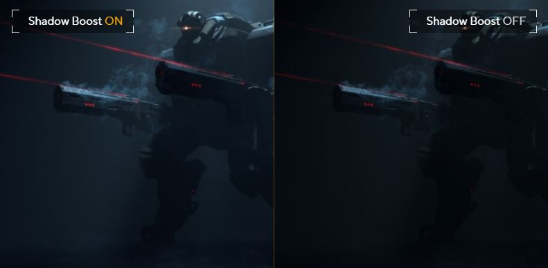 Technologie ASUS Shadow Boost zjasňuje tmavé oblasti hry, aniž by docházelo k přeexponování světlejších oblastí, čímž zlepšuje celkový obraz a zároveň usnadňuje odhalení nepřátel ukrytých v tmavých oblastech mapy.
