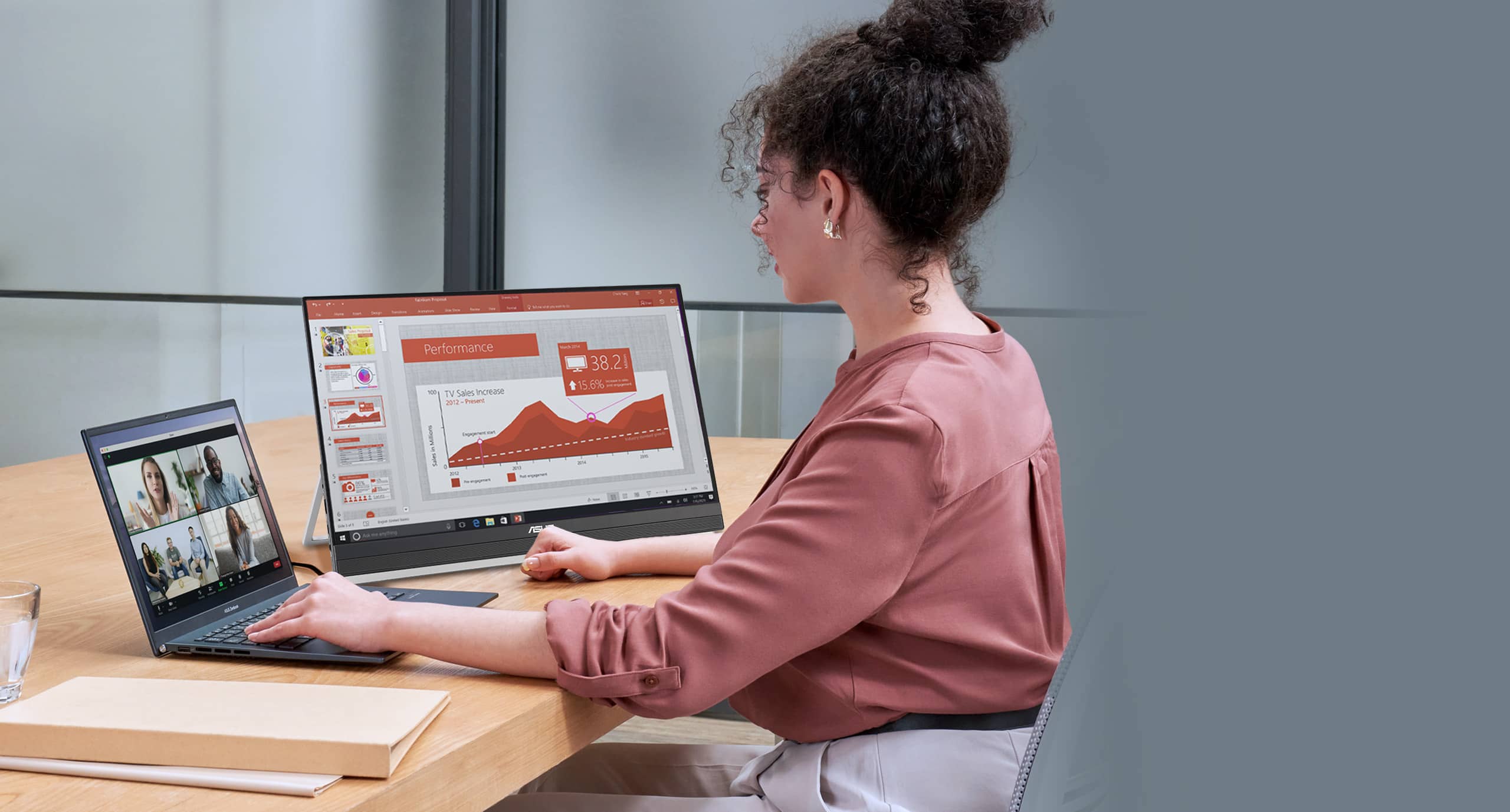 ASUS ZenScreen MB27ACF je navrĹľen tak, aby podpoĹ™il multitasking, a to dĂky velkĂ©mu bezrámovĂ©mu 27palcovĂ©mu panelu QHD s plynulou obnovovacĂ frekvencĂ 100 Hz. Jeho elegantnĂ profil o tloušťce 5,4 mm a hmotnost mĂ©nÄ› neĹľ 3 kg zajišťujĂ snadnou pĹ™enositelnost po domÄ›, kanceláři nebo sdĂlenĂ˝ch pracovnĂch prostorech. NavĂc nÄ›kolik moĹľnostĂ stojanu nabĂzĂ Ăşplnou univerzálnost, takĹľe mĹŻĹľete MB27ACF nakonfigurovat tak, aby vyhovoval jakĂ˝mkoli potĹ™ebám. Jeho univerzálnost vám umoĹľnĂ promÄ›nit jakĂ˝koli prostor v produktivnĂ kout.