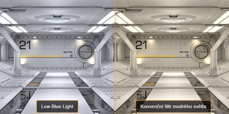 Technologie ASUS Low Blue Light redukuje škodlivĂ© modrĂ© svÄ›tlo a zároveĹ zachovává vynikajĂcĂ barevnĂ˝ vĂ˝kon.