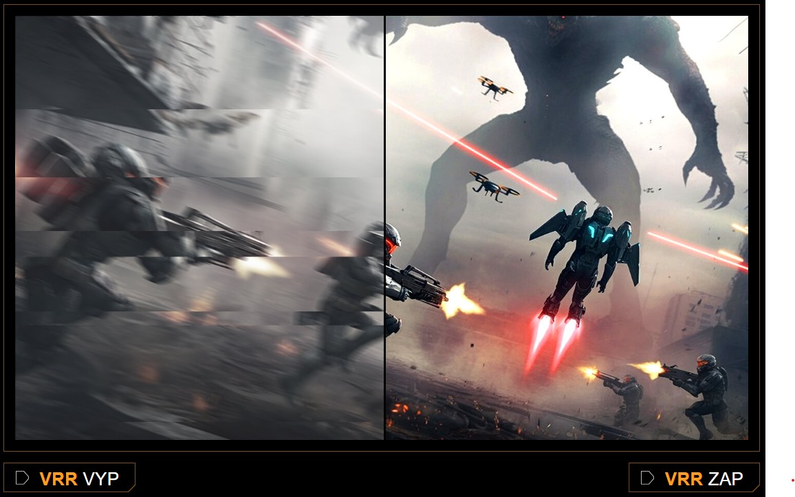 Podporuje technologie NVIDIA G-SYNC a AMD FreeSync Premium, kterĂ© zajišťujĂ plynulĂ˝ obraz bez trhánĂ. Funkce ASUS ELMB Sync navĂc eliminuje efekt ghostingu pĹ™i hranĂ her s vysokou snĂmkovou frekvencĂ.