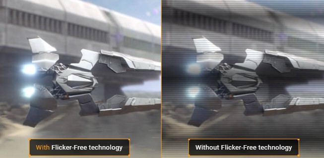 Technologie Flicker-Free omezuje blikání obrazu, čímž minimalizuje namáhání očí a zajišťuje pohodlí během dlouhých herních sezení.