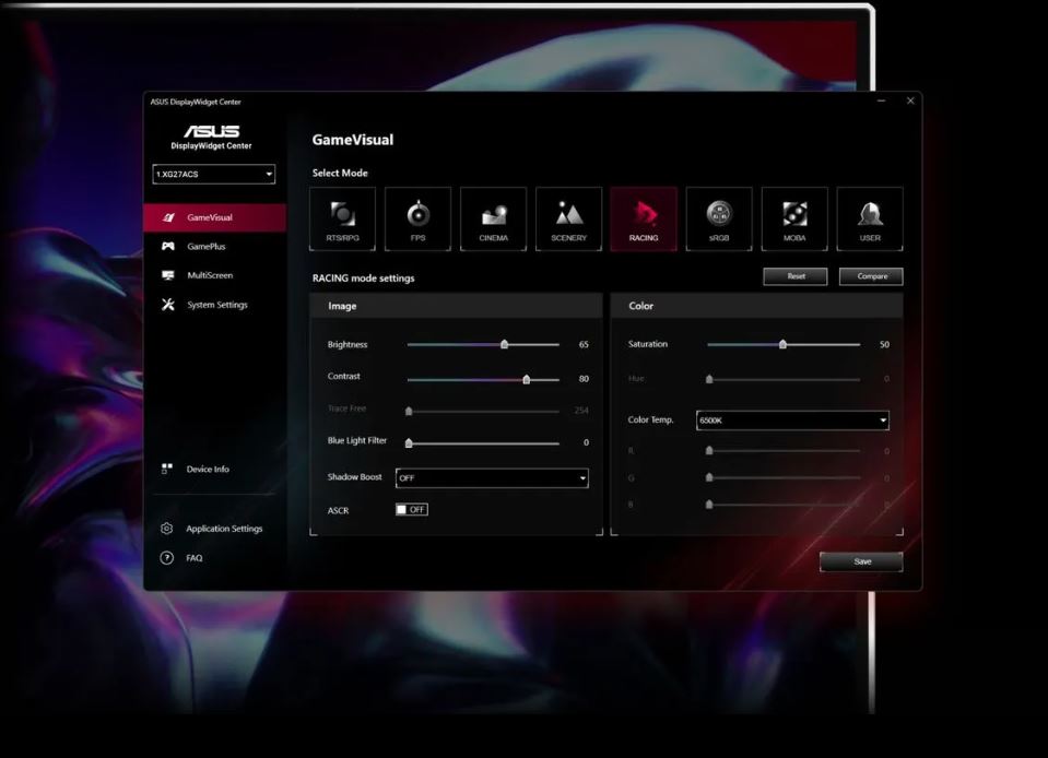 Snadno upravte nastavení monitoru prostřednictvím intuitivní aplikace DisplayWidget Center, čímž eliminujete potřebu fyzických tlačítek. Snadno si přizpůsobte nastavení pro různé hry a aplikace.