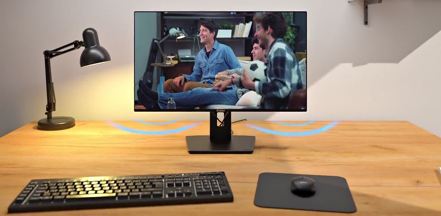 Díky integrovanému zvuku si můžete užít čistý a příjemný zvuk pro hovory, videa a hudbu a zároveň si ušetřit další reproduktory na stole.