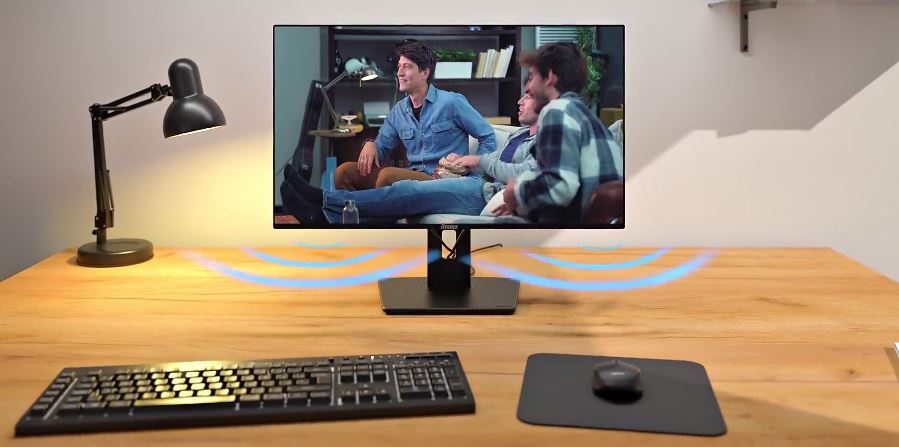 Díky integrovanému zvuku si můžete užít čistý a příjemný zvuk pro hovory, videa a hudbu a zároveň si ušetřit další reproduktory na stole.