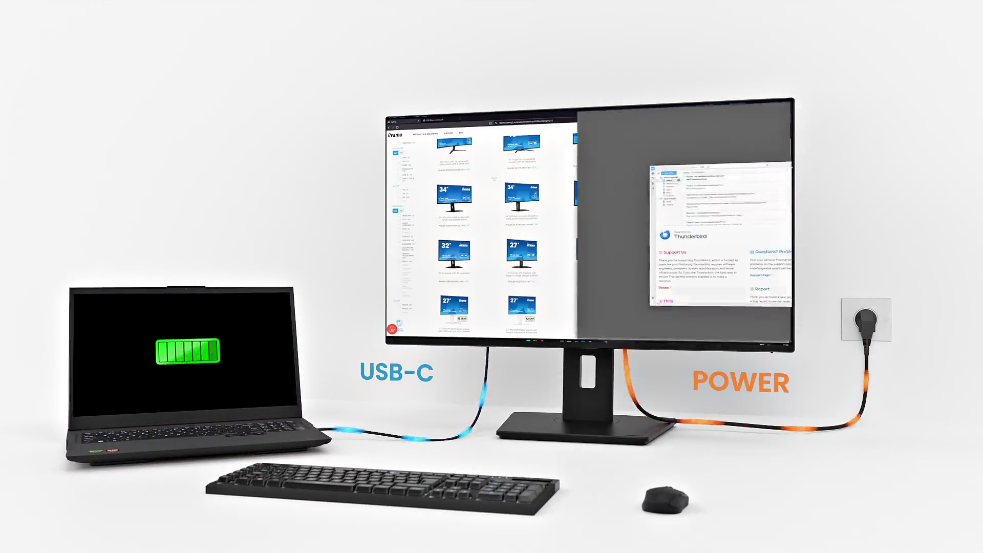 Díky USB-C s výkonem až 65 W zůstane váš notebook během práce nabitý, a to pomocí jediného připojení bez zbytečného nepořádku. Díky oboustrannému designu už nikdy nebudete muset hledat správnou stranu pro připojení. Jedná se o jednoduché a spolehlivé řešení, díky kterému se můžete soustředit na to nejdůležitější.