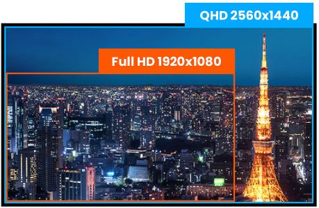 Teprve s QHD 2560 x 1440p je Váš monitor připraven k zobrazení obrazu s opravdu vysokým rozlišením. To znamená, že můžete umístit více informací na své obrazovce, například o více než 77% ve srovnání s monitorem s 1920 x 1080 rozlišením.
