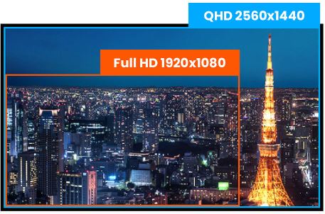 Teprve s QHD 2560 x 1440p je Váš monitor připraven k zobrazení obrazu s opravdu vysokým rozlišením. To znamená, že můžete umístit více informací na své obrazovce, například o více než 77% ve srovnání s monitorem s 1920 x 1080 rozlišením.