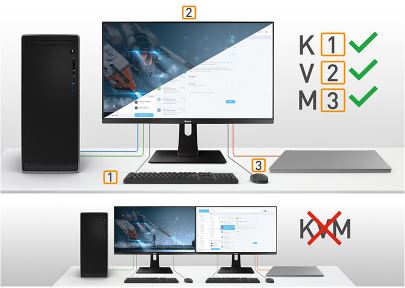 Umožňuje vám zjednodušit pracovní prostor pomocí jediného kabelu k odesílání signálu z notebooku do monitoru a nabíjení notebooku z monitoru. Pokud je navíc váš monitor připojen k internetu pomocí kabelu LAN, automaticky se k síti připojí i váš notebook.