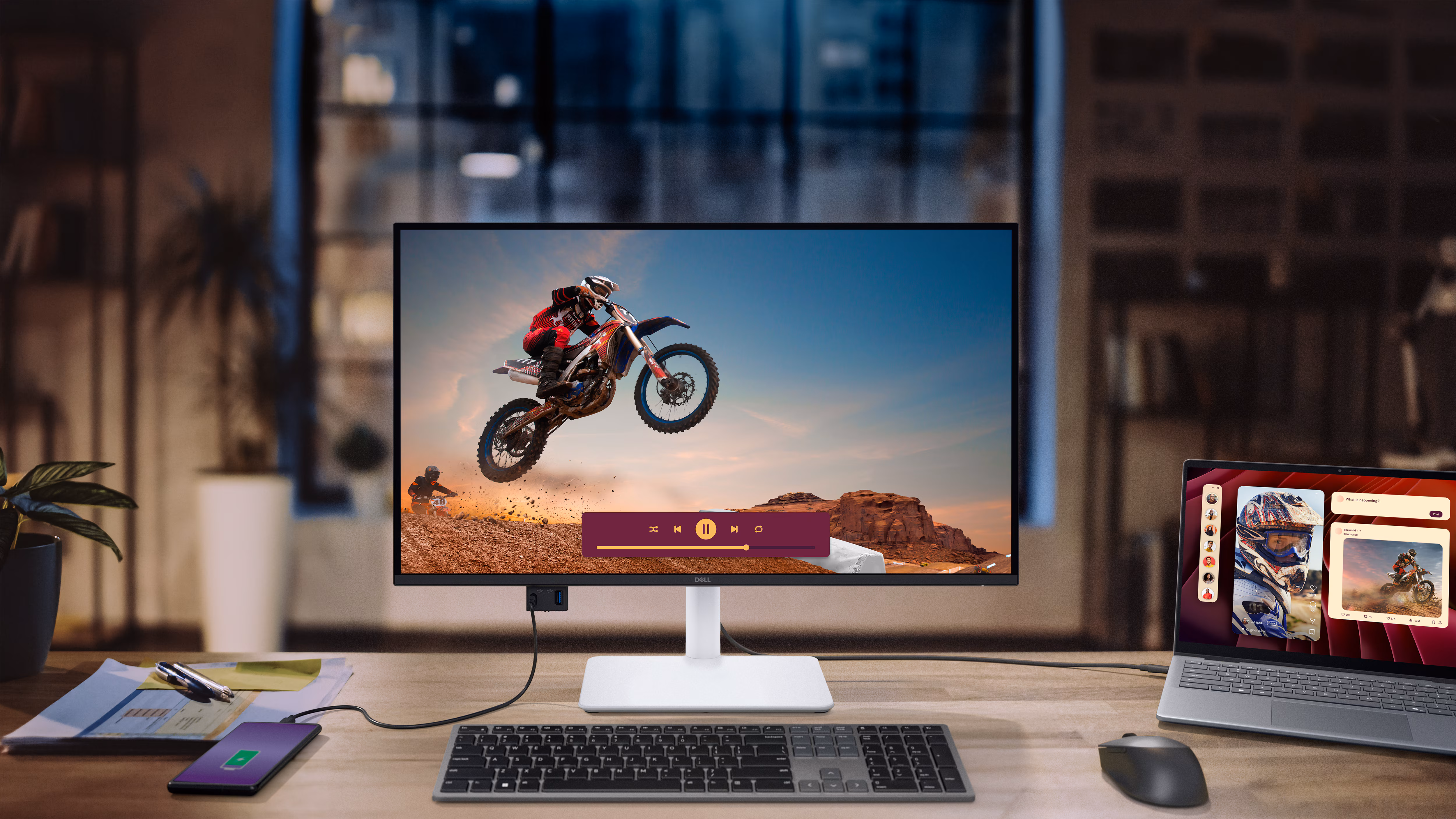 Udržujte svůj stůl přehledný a uklizený díky jedinému kabelu USB-C (s výkonem až 65 W).