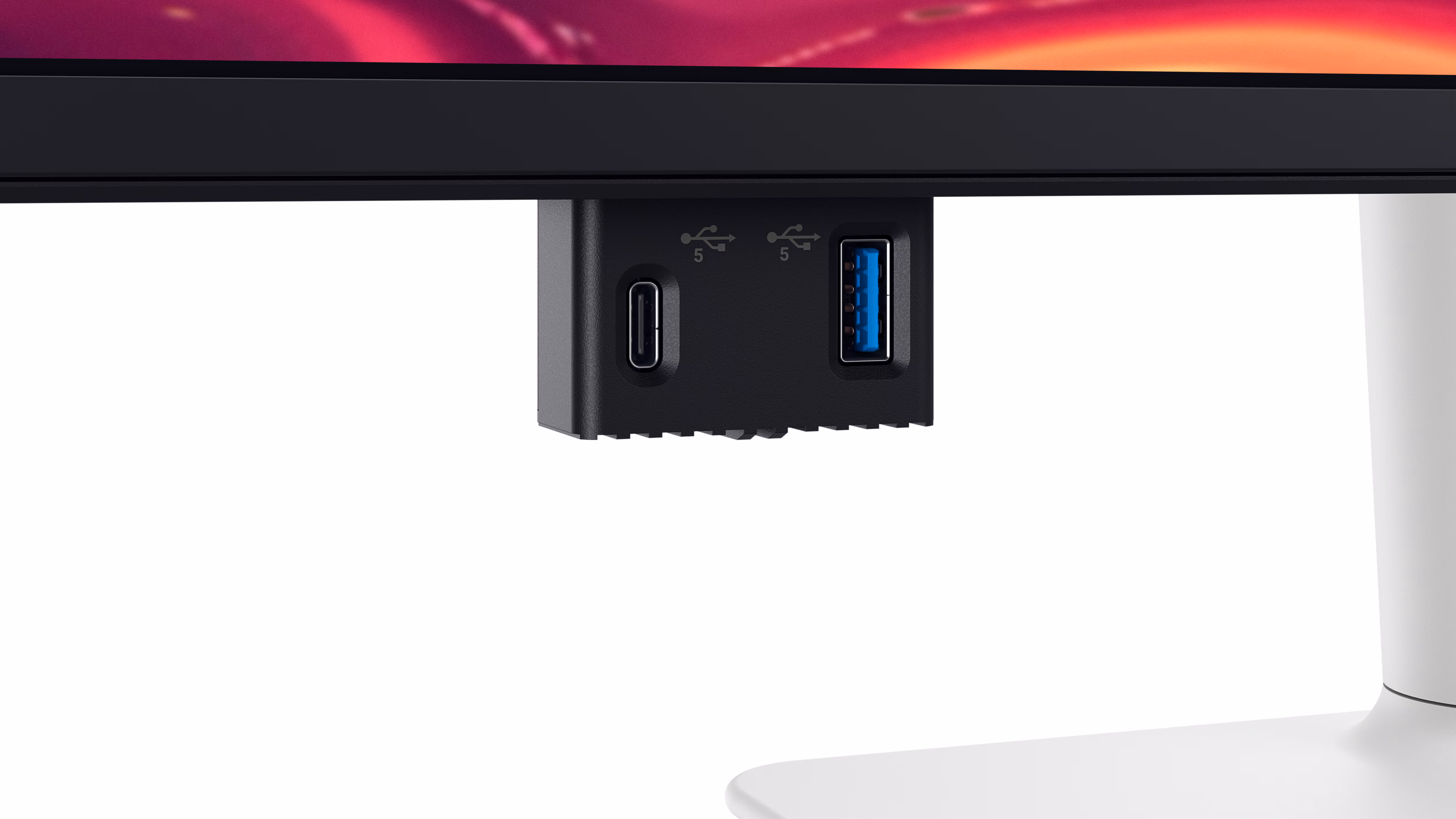 Sdílejte a přenášejte obsah pohodlně pomocí vysouvacích portů pro rychlý přístup umístěných v přední části displeje.