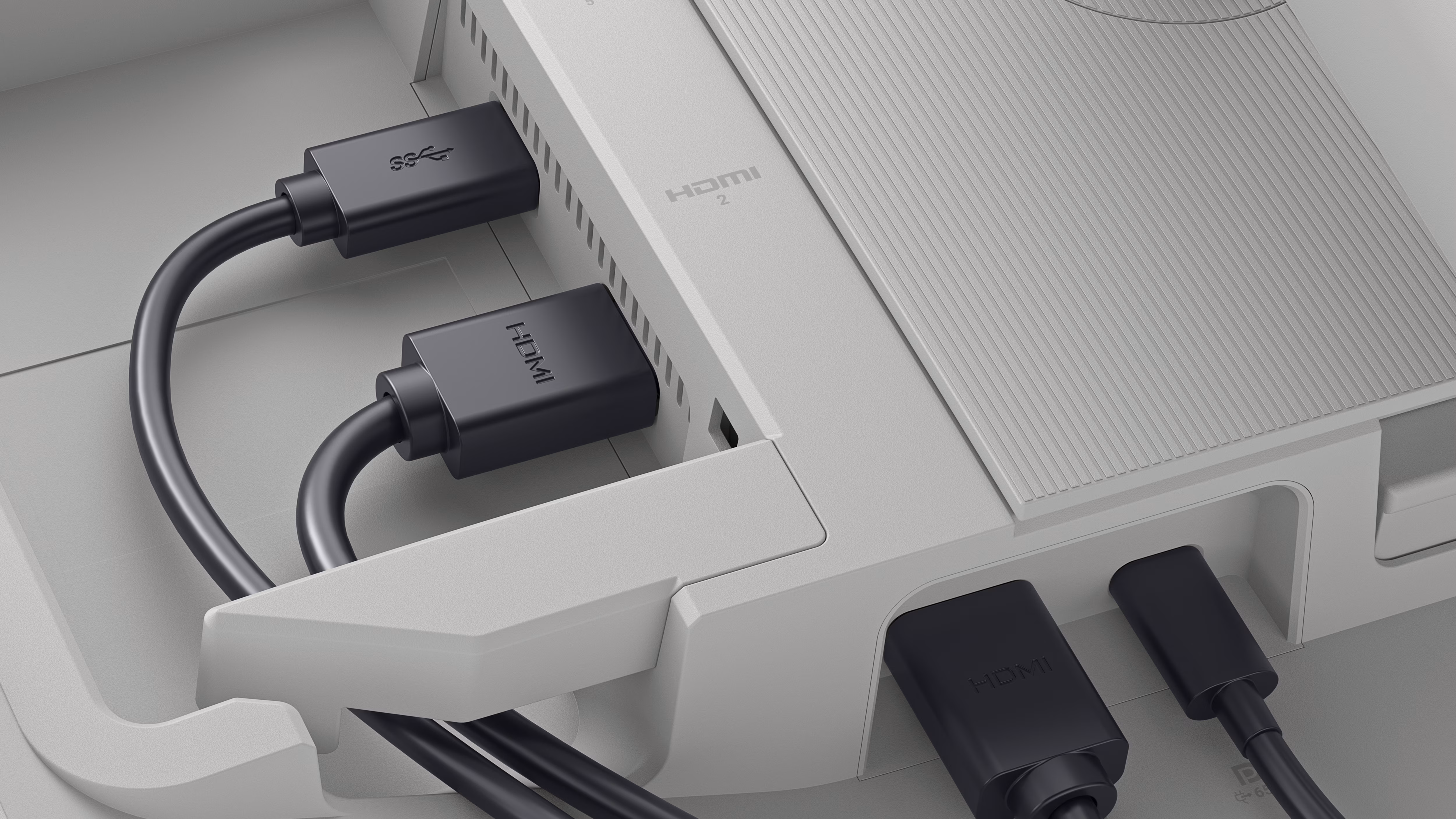 Konstrukce s bočním přístupem zahrnuje port HDMI a USB typu A, což zajišťuje rychlé a pohodlné nastavení.
