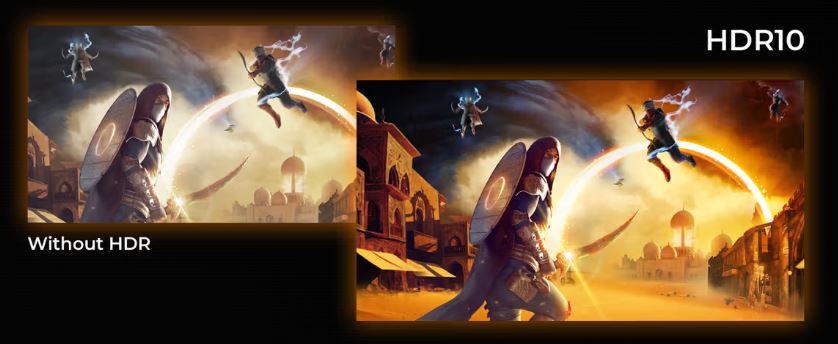 HDR10 je tady, aby ještÄ› vĂce zlepšil kvalitu obrazu a synchronizaci vašà GPU nebo konzole s monitorem. To vytvářà realistiÄŤtÄ›jšĂ, pohlcujĂcĂ a plynulĂ˝ hernĂ zážitek: Budete mĂt pocit, Ĺľe vstupujete do hry, snĂmek po snĂmku.