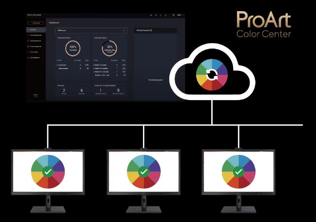 ProArt Color Center nabízí nástroje pro vzdálené skupinové ovládání a kalibraci, které vám umožní zvládnout tyto důležité úkoly z centralizovaného místa. Budete moci dálkově ovládat a provádět skupinovou kalibraci, plánovanou kalibraci a přizpůsobené parametry barev, abyste neustále udržovali přesnost a konzistenci na profesionální úrovni.
