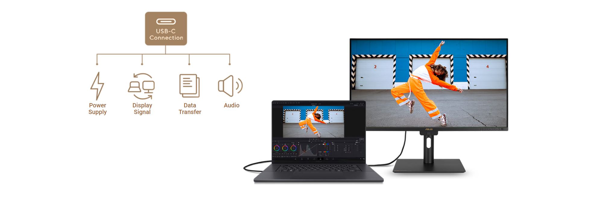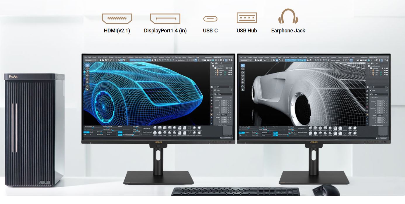 Kromě USB-C nabízí displej ProArt celou řadu možností připojení, včetně HDMI®, DisplayPort™, USB typu A a dalšího downstreamového portu USB-C pro kompatibilitu s širokou škálou zařízení, včetně průchozího portu pro sluchátka.
