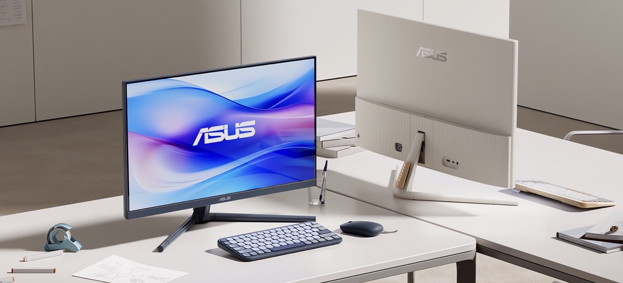 Díky promyšleným designovým prvkům se monitory ASUS VU skvěle hodí do každé počítačové sestavy. Dlouhé a tenké nohy stojanu bezpečně drží displeje, aniž by zabíraly příliš mnoho místa na pracovním stole. Monitory VU jsou praktické, ale také zábavné. Vyberte si ze čtyř barevných variant, z nichž každá má svou vlastní osobitost: Tichá modrá, zelená šedá, ovesné mléko a růžová hlína. Díky této škále barevných monitorů jistě najdete možnost, která bude ladit s estetikou vaší kompletní počítačové sestavy.