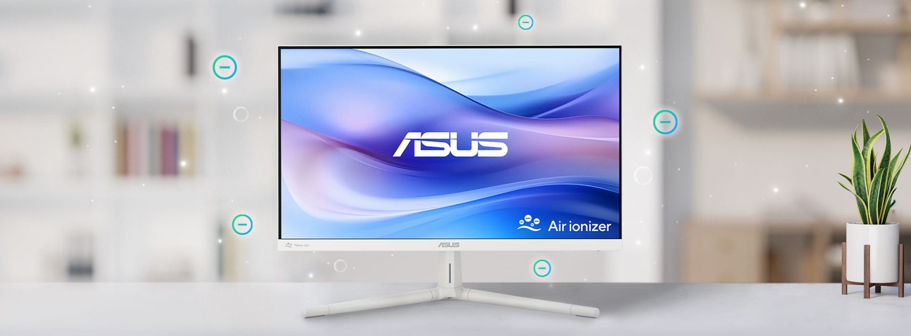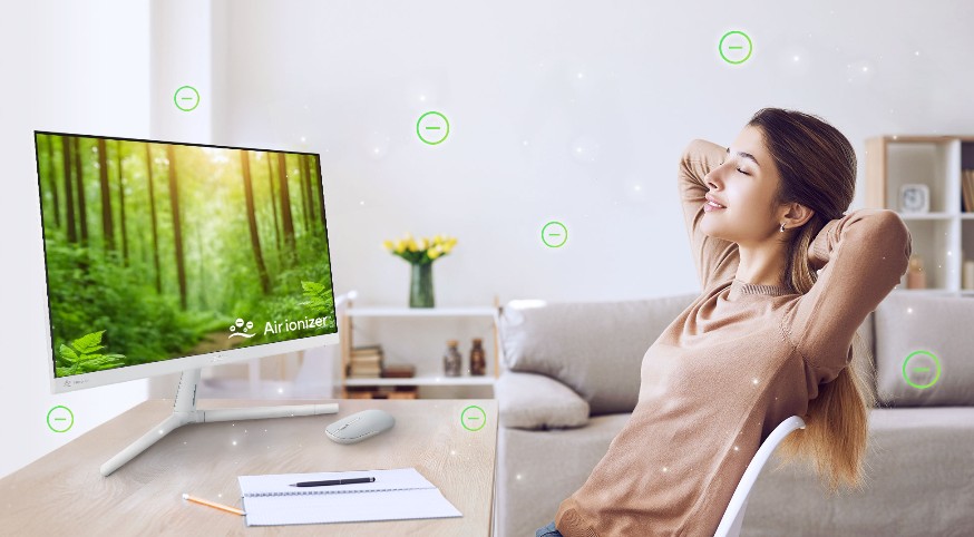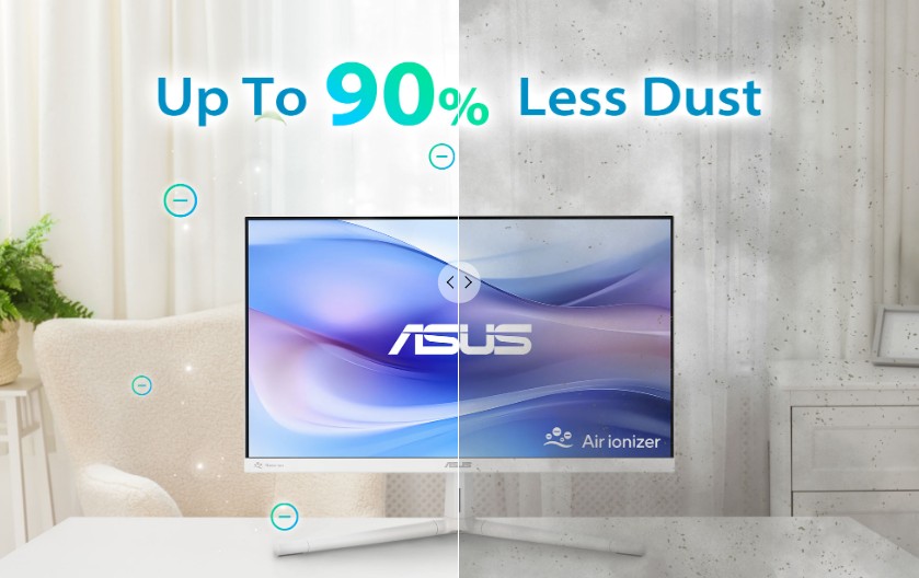 Monitory ASUS VU Air Ionizer poskytují uživatelům všechny výhody čističky vzduchu, aniž by potřebovali mít na stole další zařízení a kabely.