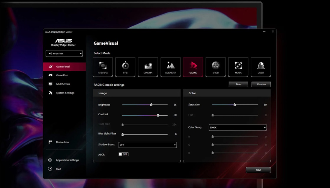 Snadno upravte nastavení monitoru pomocí intuitivní aplikace DisplayWidget Center, takže nepotřebujete fyzická tlačítka. Snadno si přizpůsobte nastavení pro různé hry a aplikace.