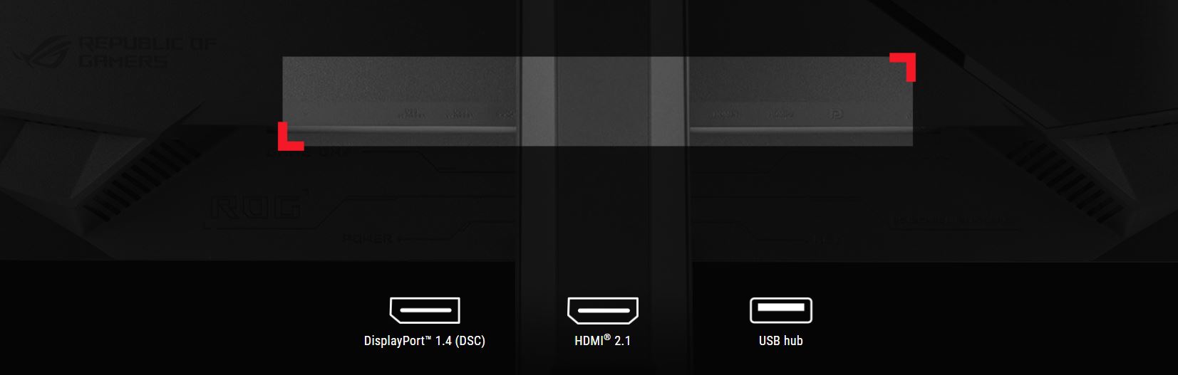 Rozsáhlé možnosti připojení, jako je DisplayPort™ 1.4 s kompresí Display Stream Compression (DSC), dva porty HDMI® 2.1 a rozbočovač USB, poskytují podporu pro širokou škálu multimediálních zařízení.