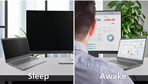 Funkce PowerSensor 2 sniĹľuje spotĹ™ebu elektĹ™iny tĂm, Ĺľe detekuje, kdy uĹľivatelĂ© k monitoru pĹ™icházĂ nebo od nÄ›j odcházĂ. Aby funkce správnÄ› fungovala, je nutnĂ© v nabĂdce OSD nastavit reĹľim „User“ a potĂ© upravit nastavenĂ ve Windows 11. Po provedenĂ Ăşprav se bude monitor a poÄŤĂtaÄŤ, ke kterĂ©mu je pĹ™ipojenĂ˝, automaticky probouzet z reĹľimu spánku, kdyĹľ se k nÄ›mu uĹľivatel pĹ™iblĂĹľĂ. KdyĹľ uĹľivatel odejde, monitor a poÄŤĂtaÄŤ se pĹ™epnou do reĹľimu spánku, ÄŤĂmĹľ se snĂžà mnoĹľstvĂ ÄŤasu, kdy je monitor zbyteÄŤnÄ› zapnutĂ˝. Vzdálenost detekce lze nastavit na 50, 75 nebo 120 cm od monitoru. Tato funkce vyĹľaduje Windows 11.