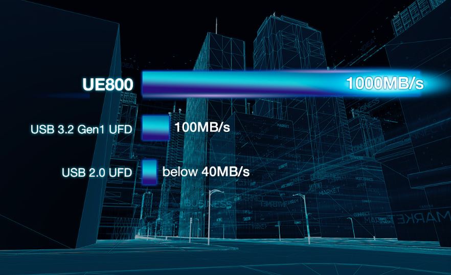Kompaktní jednotka UE800 nabízí rychlost čtení/zápisu až 1 000 MB/s, což je 10krát rychleji, než průměrná jednotka USB 3.2 Gen1.
