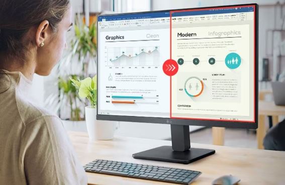 Tento displej má tenký rámeček na třech stranách, který umožňuje vytvořit vhodné pracovní prostředí díky pohodlnému nastavení sklonu.