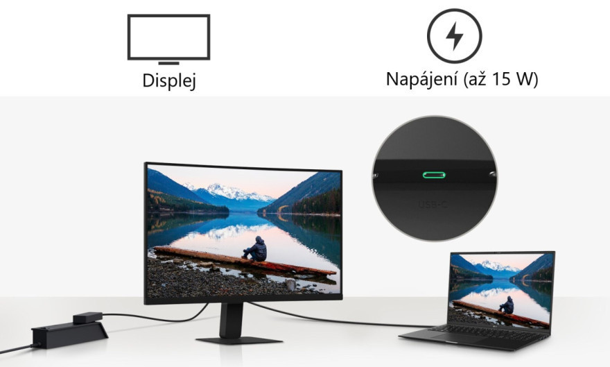 PĹ™ipojte notebook k monitoru kabelem USB-C a zĂskejte aĹľ 15W napájenĂ a moĹľnost pĹ™ipojenĂ displeje.