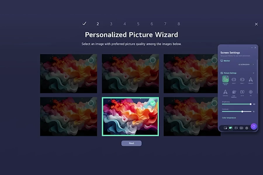 Aplikace LG Switch zjednodušuje nastavení displeje, abyste se mohli soustředit na tvorbu. Pomocí průvodce obrazem můžete doladit jas a kvalitu obrazu pro úpravy fotografií nebo barevné korekce. Okamžitě spouštějte videohovory a organizujte okna v 11 flexibilních rozloženích na obrazovce.