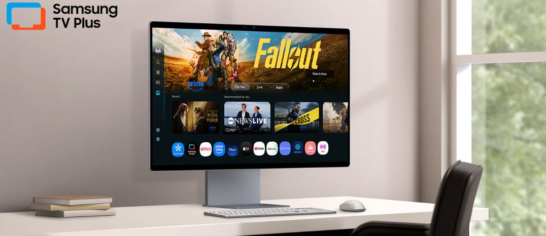 Sleduj vysílání přímo z monitoru, nebo si nalaď Samsung TV Plus a získej televizní kanály s živými přenosy a další obsah na míru.