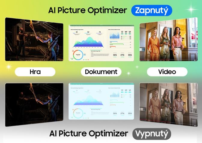 Zažij maximální kvalitu obrazu přizpůsobenou tvým potřebám. AI Picture Optimizer upraví vizuály pro pohodlnou práci s dokumenty, pohlcující hraní s nejhlubšími odstíny černé a sledování videí v bohatých a sytých barvách.
